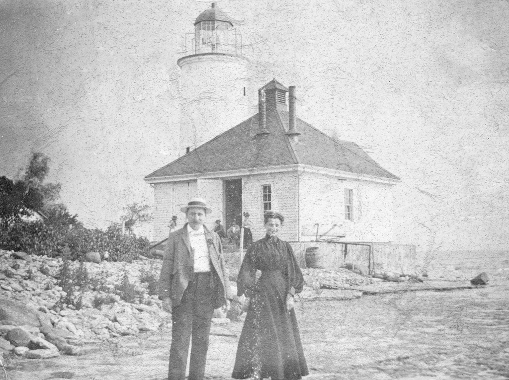 When completed, Nine Mile Point Lighthouse stood forty feet tall and was equipped with eleven lamps and reflectors that produced a fixed white light. Thomas Sparham was appointed the first keeper of the lighthouse, but no dwelling had been built for his convenience. The sum of £150 was finally granted in February 1837 to “erect a dwelling house on the Nine Mile Point, near Kingston, for the use of the Keeper of the Light House at that place.”