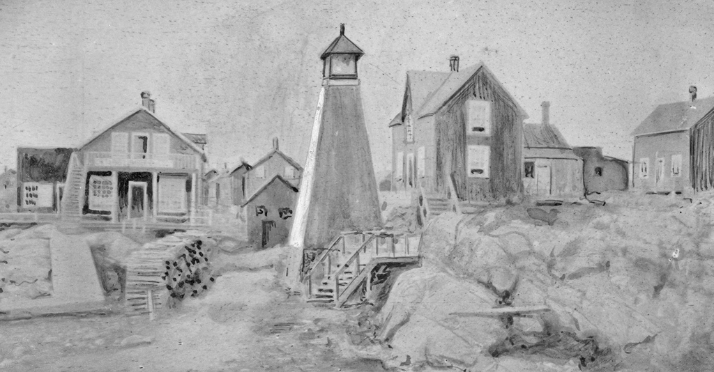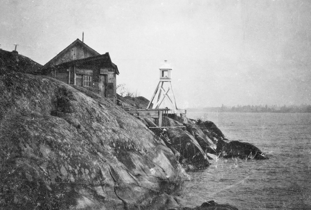 In 1875, an officer of the Department of Marine accompanied by an office of the Department of Public Works surveyed the mouth of the French River and established four temporary lights. Two outer lights, placed on one of the Bustard Rocks, served as a range to help mariners reach the mouth of the river, and two inner lights, one on Lefroy Island and the other 4,600 feet away in the village, led vessels up the river to the wharf at French River. The four towers consisted of trellis work topped by a wooden lantern and stood between fifteen and twenty-seven feet tall.