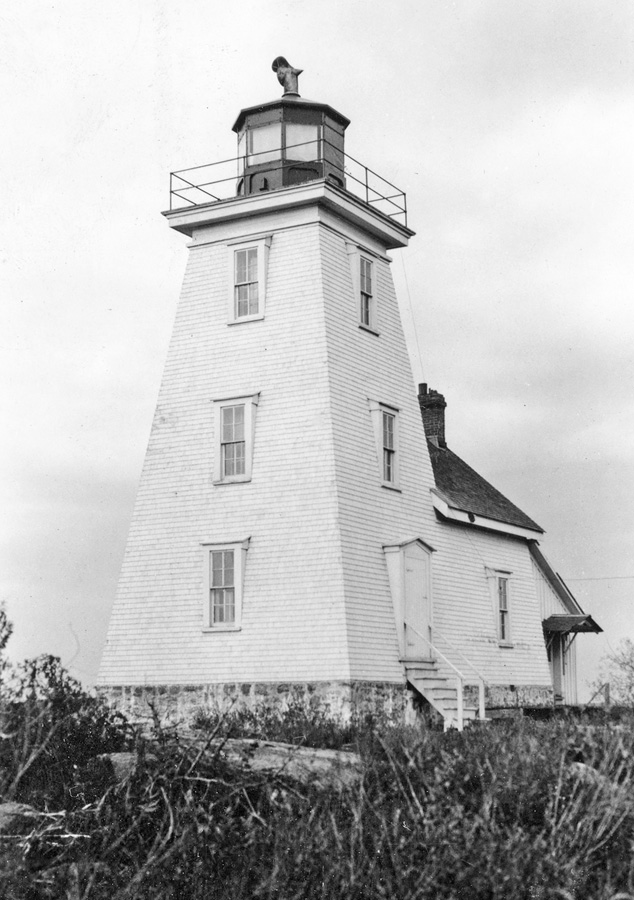 Parliament appropriated funds for a new lighthouse at Byng Inlet in 1879, and the following year, P.J. Sylvester built the present square, pyramidal tower with attached dwelling on Gereaux Island. The lighthouse’s fixed white light, which was exhibited at a height of forty-seven feet above the water, was placed in operation in October 1880. The Maganettawan Lumber Company was being paid to maintain the light at this time and continued in this role until April 1883, when James Milne was hired as keeper. Keeper Milne resigned after just one season, and Joseph Lamondin was placed in charge of the light. Keeper Lamondin and his two sons Louis and Charles cared for the light for the next sixty-two years.