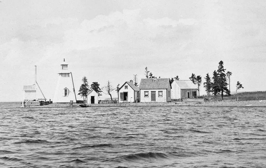 To mark the circuitous route that vessels have to take to avoid all the islands in St. Peters Inlet, the Department of Marine erected three pole lights to mark important turning points. These lights were placed on Gregory Islet, on the southeast tip of Beaver Island, and on Gooseberry Islet off Sandy’s Point. Each of these three lights was produced using a “Mississippi Lantern,” which was deployed in the following manner: