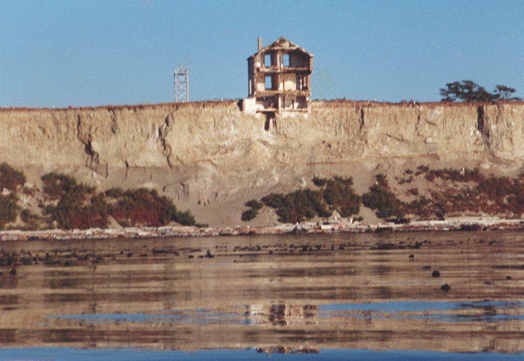 Over the following decades, pieces of the old house began to fall away. Photographs show the lighthouse foundation was right at the edge of the bluff in 1975. In 1982, just over half of the lighthouse was standing. In 1993, roughly a quarter of the lighthouse remained, and in 1998, the last surviving portion tumbled over the edge.