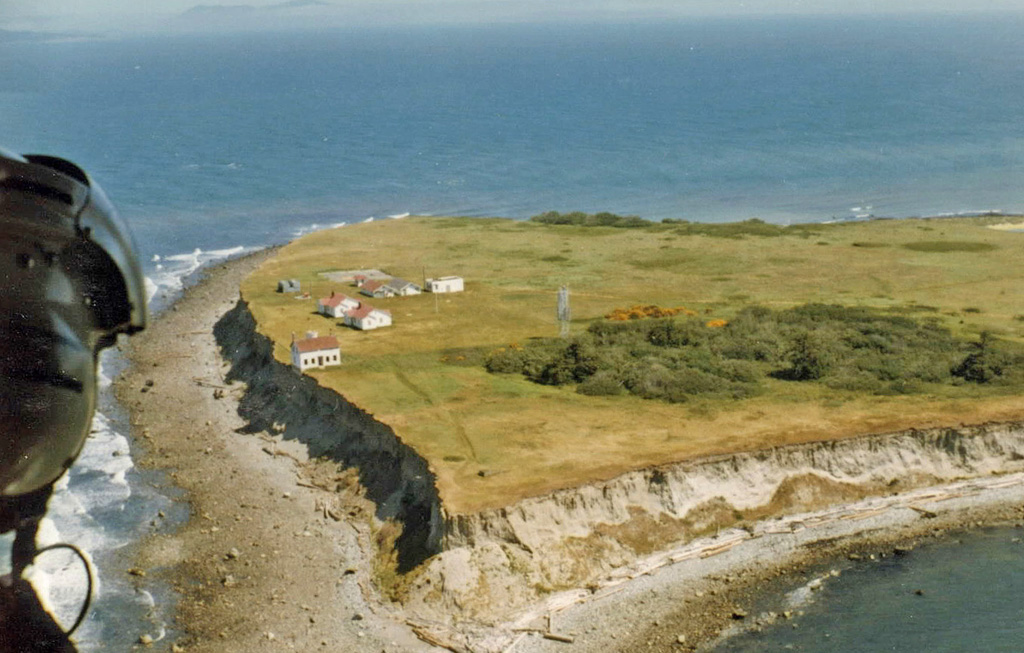 The sea is rapidly eroding the west face of the island, and the bank is continually caving. It is at present only about 160 feet distant from the dwelling, and if as much damage is annually done as has been done in each of the past few years, the sea will, unless an extensive breakwater is constructed, reach the light in about ten years.This prediction proved to be pessimistic, as the lighthouse would survive for over a century. By the early 1950s, the structure was nearly undermined, and the Coast Guard decided to abandon the lighthouse. A new light was established nearby on a skeletal metal tower in 1957, and modern dwellings were provided for the keepers.