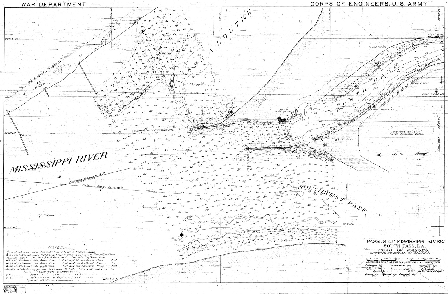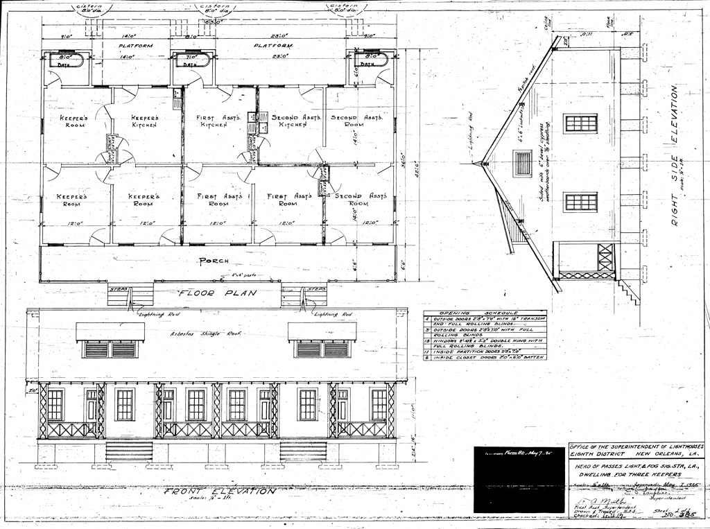 The late nineteenth century marked a gradual transition from lighthouse to service hub. The construction of jetties extending from Deer Island toward deep water shifted navigational emphasis away from the lighthouse itself. Beginning in 1878, pier-head and jetty lights were established at the entrances to the South Pass. By 1888, Head of Passes was officially regarded as a light attendant station rather than a primary navigational light.