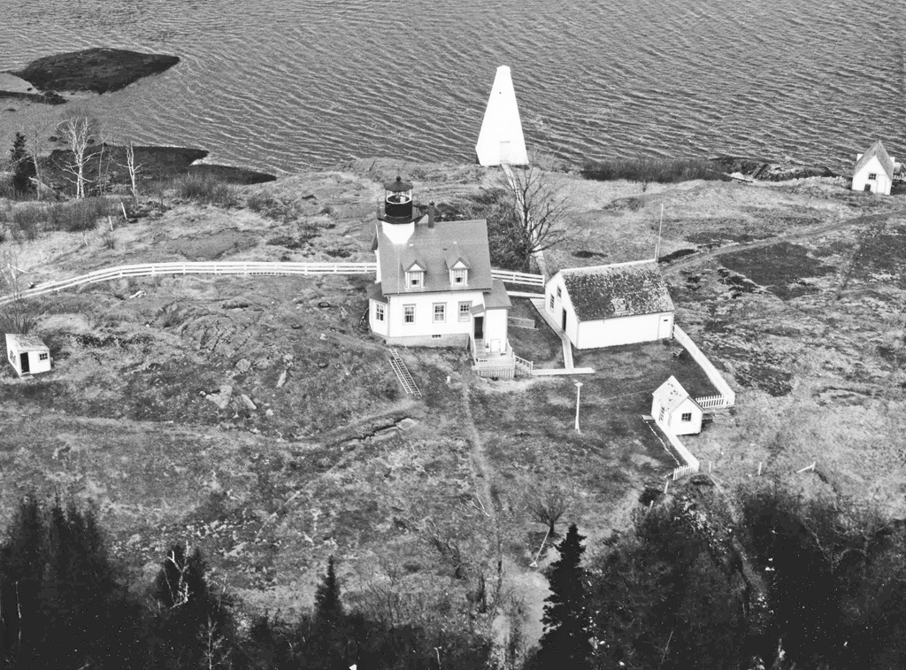 An 1875 inspection report offers a vivid snapshot of the station. The lantern had eight sides; the tower rose from the attic floor of the 1½-story dwelling. The island reservation comprised only a few acres, part sandy loam and part bare rock, with a small garden at the north end. The south end was washing away under tidal action. The report noted leaking cisterns, the need for a pump, and the absence of a proper boathouse.