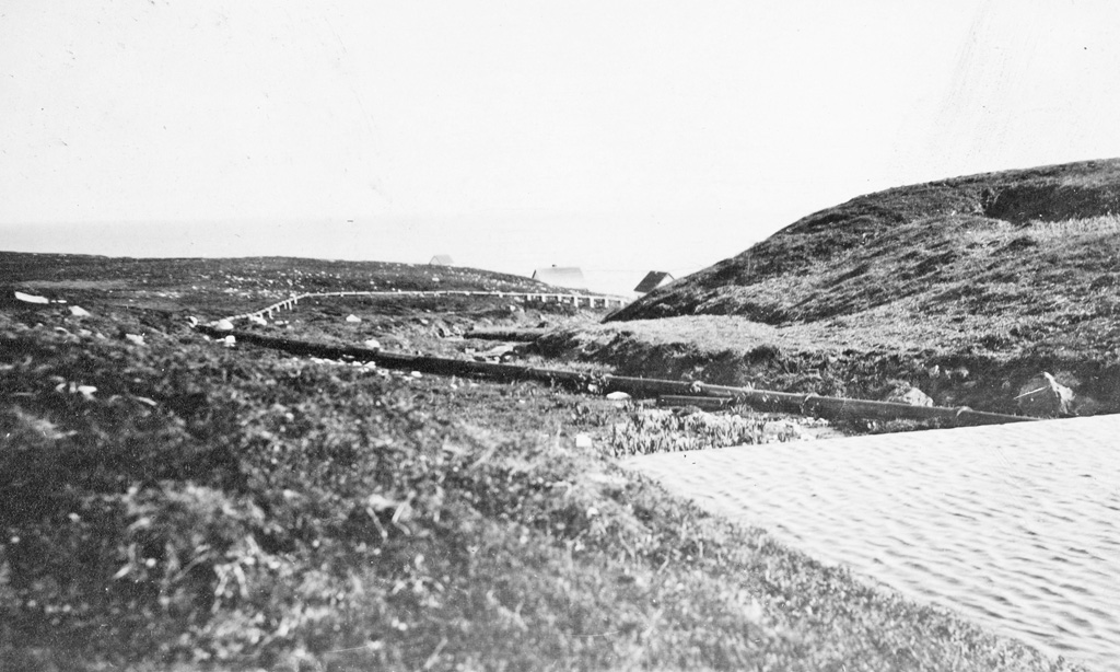 Photograph courtesy Ricky MyrickThe power house is located near the mouth of the creek 800 feet north of the extremity of Cape Freels. It is a rectangular wooden building, painted white with the roof red.