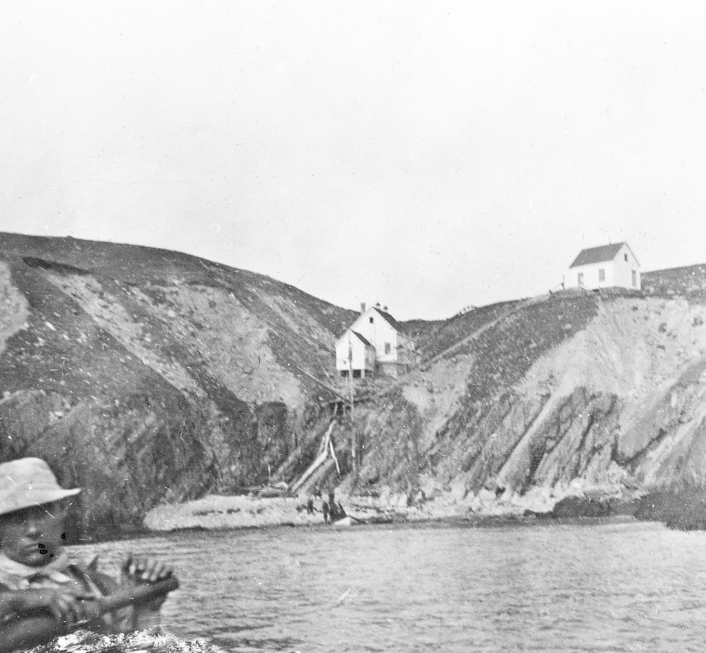 Though no lives were lost in these three shipwrecks, the incidents highlighted the need for a fog alarm along that coast. As a result, the steamer Cabot was employed to inspect the shore near St. Shott’s in 1883 to determine where a fog alarm should be built. At that time, the eastern and western head at St. Shott’s were examined, and it was felt that the eastern head would be the better location though there was a better water supply at the western head. The question of where to place the fog alarm was still being discussed three years later, when it was proposed to place an alarm at each of the headlands. A new method of signaling by compressed air had just been adopted at Alisa Craig, an island off the western coast of Scotland, where a centrally-located engine was used to operate alarms at considerable distance from each other. The engine, it was thought, could be located in the settlement at St. Shott’s and then air could be piped to the alarms on the headlands.