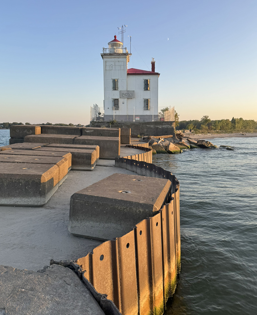 Fairport Harbor Breakwater Lighthouse is now automated, and its Fresnel lens has been replaced with a modern optic. While the breakwater light can be seen from the old lighthouse, visitors wishing to get a better look at the light can walk out on the breakwater.