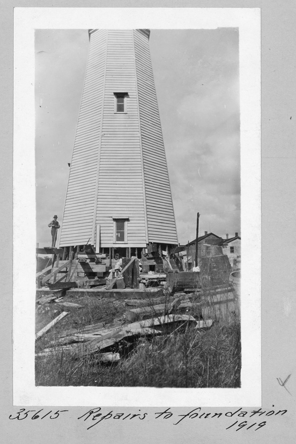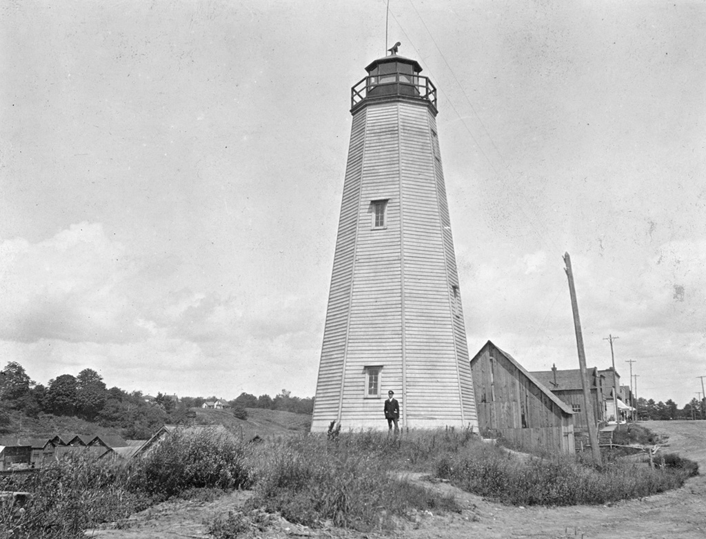 The Village of Port Burwell acquired its historic wooden lighthouse in 1965, and in 1986 Mennonite craftsmen refurbished the tower using hand tools and methods similar to those used in the original work.