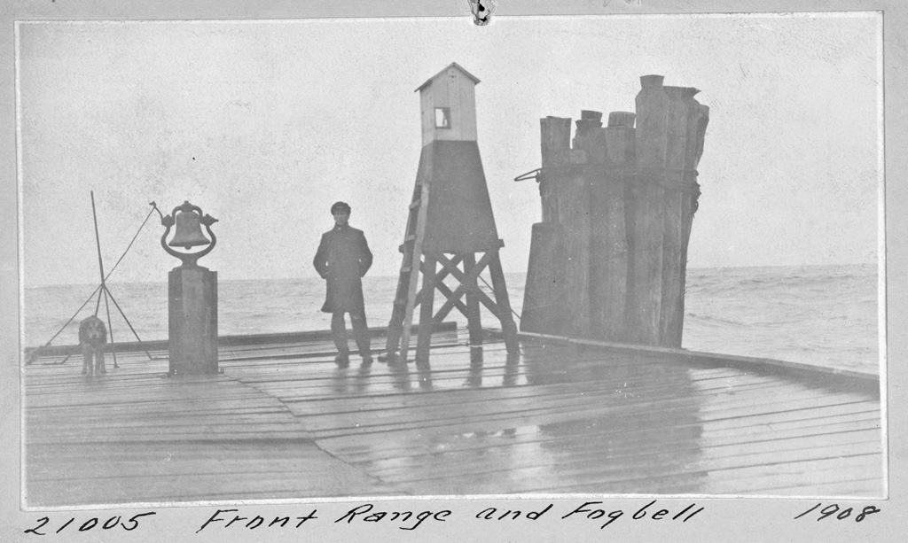 In 1910, a fourth-order lens illuminated by petroleum vapour burned under an incandescent mantle replaced the array of three lamps and reflectors in the tower’s lantern room.