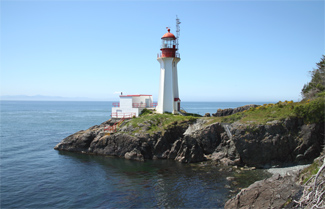 Even after Carmanah Point Lighthouse was built at the northern entrance to the Strait of Juan de Fuca in 1891, there were still several nautical miles of unnerving darkness before a ship entering the strait from the north would catch the light from Race Rocks. This dark void disappeared in 1912 with the establishment of the Sheringham Point Lighthouse.