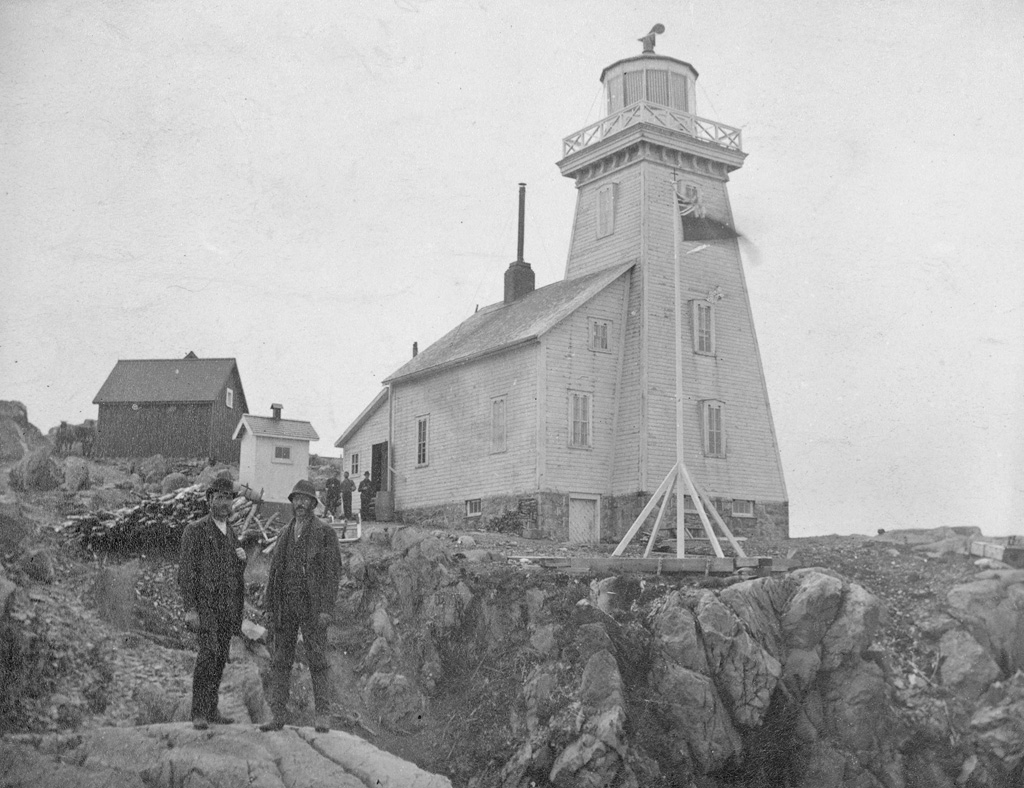 Built of wood, the lighthouse consisted of a square, sixty-foot tower attached to a keeper’s dwelling. A revolving catoptric lighting apparatus was used in the lantern room to produce alternating red and white flashes, spaced by forty-five seconds. The light had a focal plane of 141 feet above high water and could be seen for up to eighteen miles. The foghorn, operated by compressed air, was located in a building about 150 feet from the lighthouse. This signal produced a ten-second blast in each minute when needed. The total amount expended for the work was $8,675.71, and Alexander St. Laurent was appointed keeper at an annual salary of $800, out of which he was required to hire a “duly qualified assistant.”