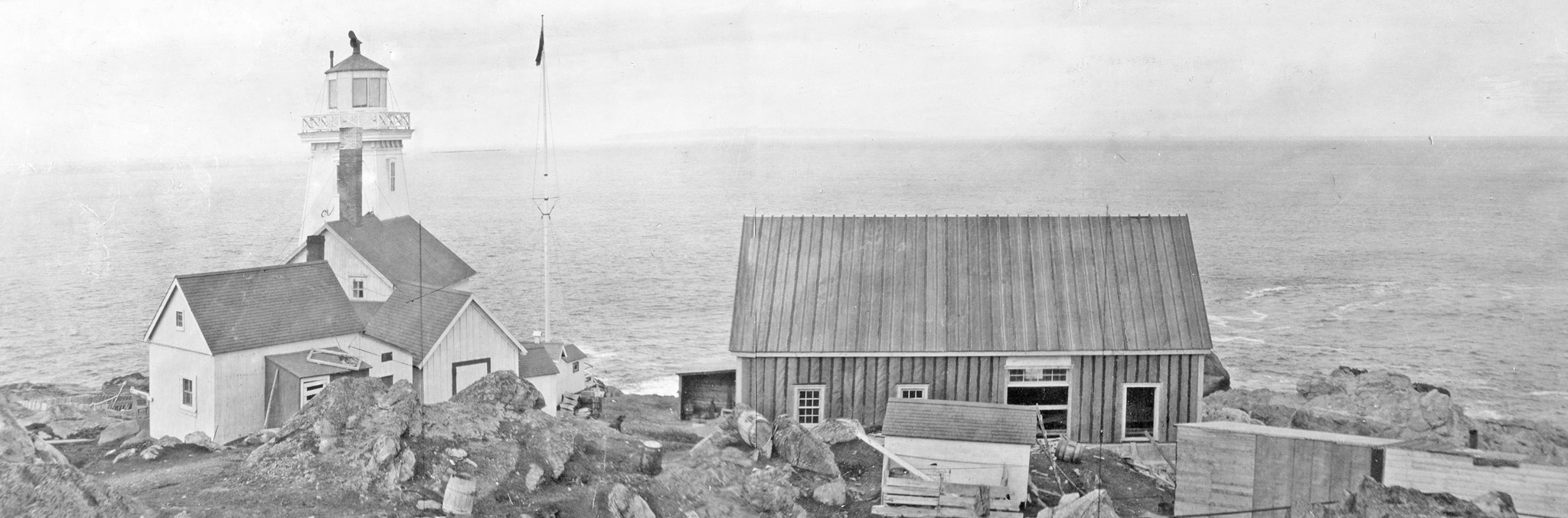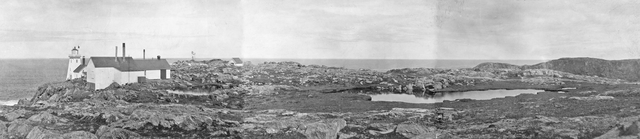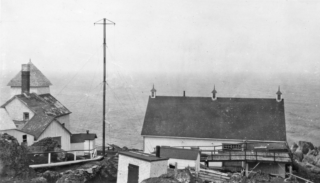 In 1924, an automatic radio fog signal beacon was established at Cape Bauld. The wireless station transmitted on a wavelength of 1,000 meters with a spark frequency of 500. The station’s characteristic was a series of groups, each consisting of a dash, a dot, and two dashes, transmitted for a period of sixty seconds followed by a silent interval of one and one-half minutes. The radio beacon had a range of approximately twenty-five miles and operated continuously during thick or foggy weather.