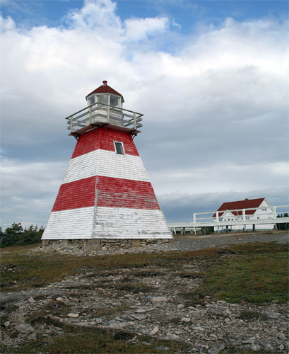 As Keppel Island marks the southern side of the entrance to Port Saunders and the northern side of the entrance to Hawke’s Bay, it is not surprising that a lighthouse was erected on the island in 1901. This tower, a square, wooden, pyramidal structure topped by an octagonal lantern remains standing today, though its function was taken over by a modern skeletal tower in 1992.