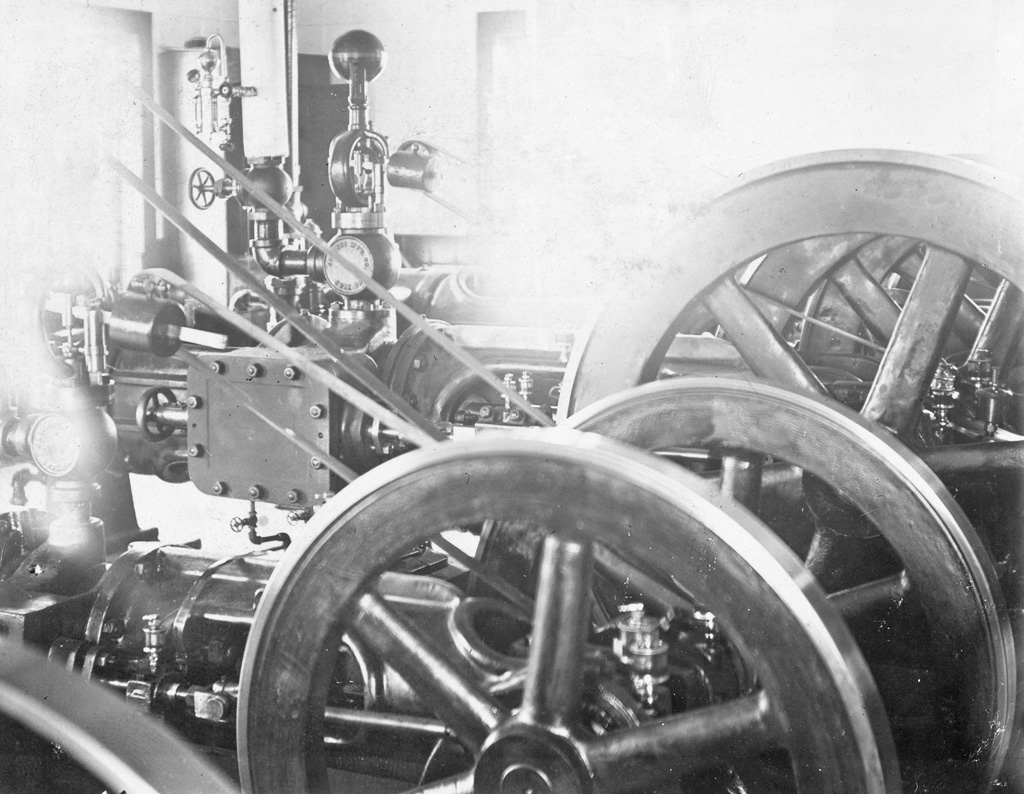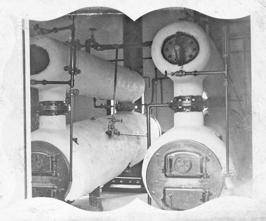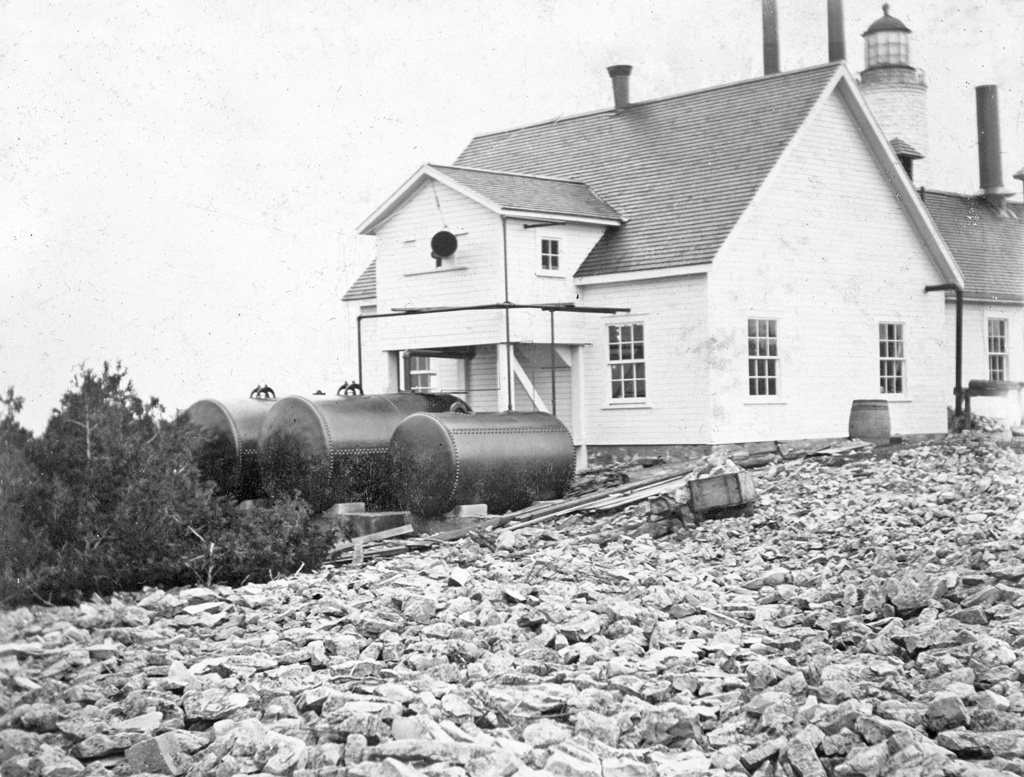 In 1897, the fog alarm building was enlarged to house duplicate fog-alarm machinery in the form of twin boilers made by John Inglis & Sons of Toronto. A diaphone, operated by compressed air and manufactured by the Canadian Fog Signal Company, replaced the steam foghorn in 1905. At that time, a wooden addition measuring twenty-two feet by twenty-eight feet was built onto the fog alarm building. Air tanks were placed on concrete foundations as part of the new installation. The diaphone foghorn gave a five-second blast every two minutes.