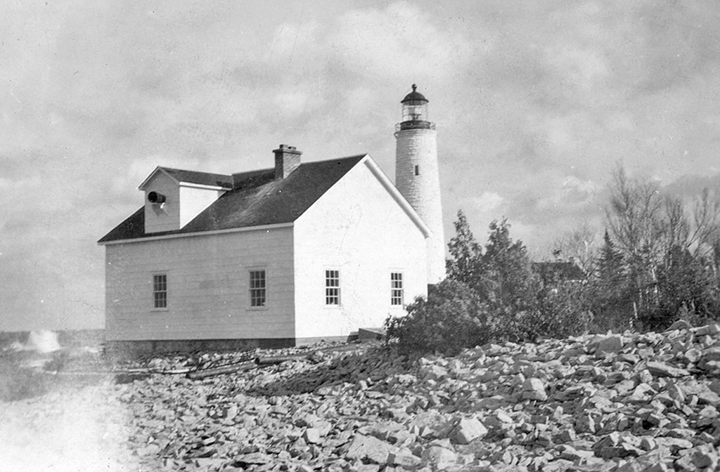The lighthouse on Cove Island, situated at Gig Point on the northwest tip of the island, marks the strait between Lake Huron and Georgian Bay and has the distinction of being the first lighthouse to be lit on Georgian Bay and the last to have its keeper removed.