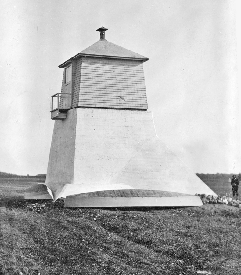 The front tower which was carried away by the ice on the 19th April and landed in the middle of a field some 500 feet distant, was found not to have been much damaged and was therefore replaced in position. It was repaired and the platform was renewed. Slight repairs were also made to the metal roof and the tower was painted by the keeper with local assistance. A new ventilator was also put in the back tower. The total expenditure incurred at this station was $64.61.