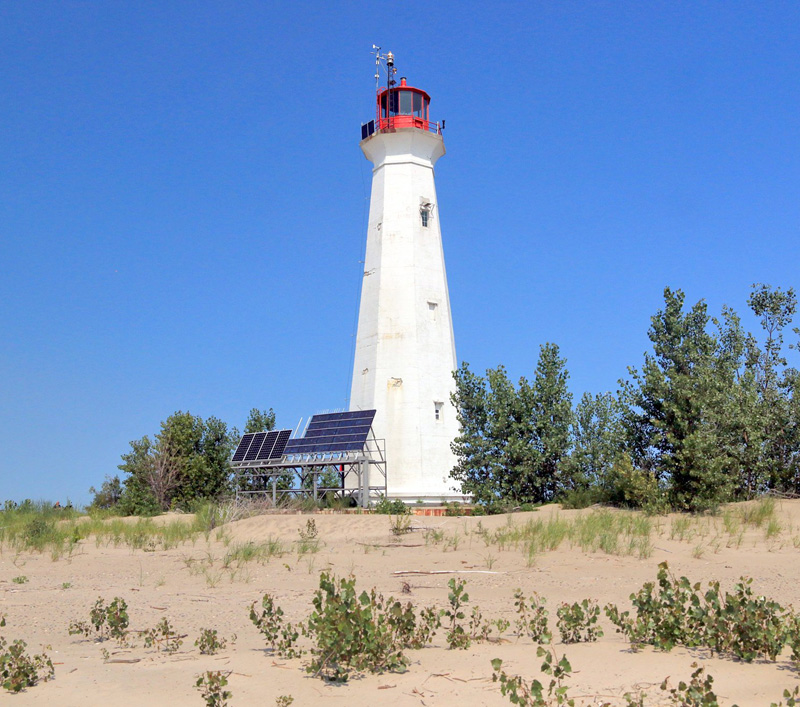 In 1832, the foundation of the lighthouse was already being damaged by the dashing of waves at its base. The north side of the point had worn away more than thirty yards since the lighthouse was built, with twenty yards being carried away during a storm in September 1831 and a few more yards being lost in November 1832. The brick keeper’s dwelling had fallen victim to erosion by 1836, and in 1838 the inspector general warned that the lighthouse was in imminent danger of collapsing. With its foundation undermined, Long Point Lighthouse was taken down either in 1838 or 1839, along with the remains of the dwelling, and moved farther inland, where the dwelling was rebuilt and the lighting apparatus from the tower was stored therein. Vandals later broke into the house and stole twelve reflectors, fifty gallons of oil, and roughly 300 pounds of iron.