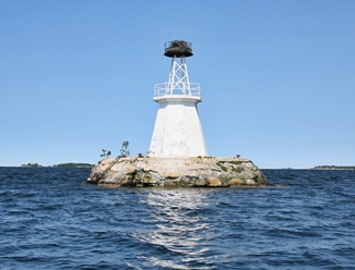 After following the two sets of range lights, captains still have to avoid a few more obstacles to reach Parry Sound, one of which is Spruce Shoal. A steel gas buoy, painted black with the words “Spruce island shoal” in white letters, was anchored near the southern end of the shoal extending from Spruce Island in 1898. The buoy exhibited a fixed white seven light feet above the water that was visible for three miles.