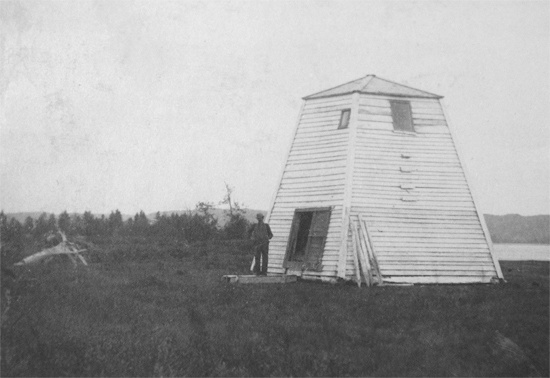 The final manned lighthouse to be built on the Saguenay River was at Cap à l’Est, a critical turn thirty-one kilometres below Saguenay, where Ha! Ha! Bay branches off from the river. Built in 1909, Cap à l’Est Lighthouse is a thirty-three-foot-tall, octagonal, reinforced-concrete tower surmounted by an octagonal lantern. The construction was performed by day’s labour under the supervision of H de Haan at a cost of $2,636.16. A sixth-order Fresnel lens initially beamed forth a fixed white light under the care of G. Sergerie, its first and only keeper. In 1917, Aga equipment was installed in the lighthouse, changing the characteristic of the light to a white flash every three-and-a-half seconds and allowing for the automation of the light. Today, the light has a signature of a flash every five seconds.