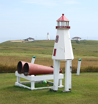 The present Entry Island Lighthouse, an octagonal, concrete tower that stands forty-eight feet tall, was built in 1969. The two former keeper’s dwellings, which have been moved just off the lighthouse property were built in 1965 and 1967. The 1905 dwelling has been relocated but remained standing in 2013. The 1927 lighthouse was sold in 1982 to Ruben Aitkens, who tore it down and used the lumber to build a house on the island. The metal horns used in the fog signal can be seen on the lawn of the McLean home, near the community church. John McLean served as keeper of the light until 1988, when it was automated.