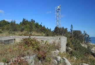 In 1926 – 1927, a fog alarm building was constructed on the cape just east of the lighthouse, and a dwelling was built just inland from the fog alarm and old lighthouse. Prior to this, the keeper would use a hand-operated foghorn to answer signals from vessels. The new diaphone fog alarm sounded two blasts every minute in this manner: three-and-a-half-second blast, three seconds of silence, three-and-a-half-second blast, fifty seconds of silence.