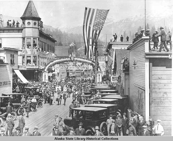 On July 9, 1923, one of the keepers noted in the station’s logbook that the U.S.S. Henderson had passed Lincoln Rock at 3:20 a.m. with President Warren G. Harding aboard. The keeper wrote: “Did not put flag out as sun was not up yet and President would be asleep.” President Harding was the first sitting President to visit Alaska. The previous day, he had stopped at Ketchikan, where he addressed the residents and laid the cornerstone of the Masonic Temple. Harding embarked on his nearly two-month-long Voyage of Understanding to connect with voters across the country amidst looming scandals. The voyage ended prematurely when President Harding died of a heart attack in San Francisco on August 2.
