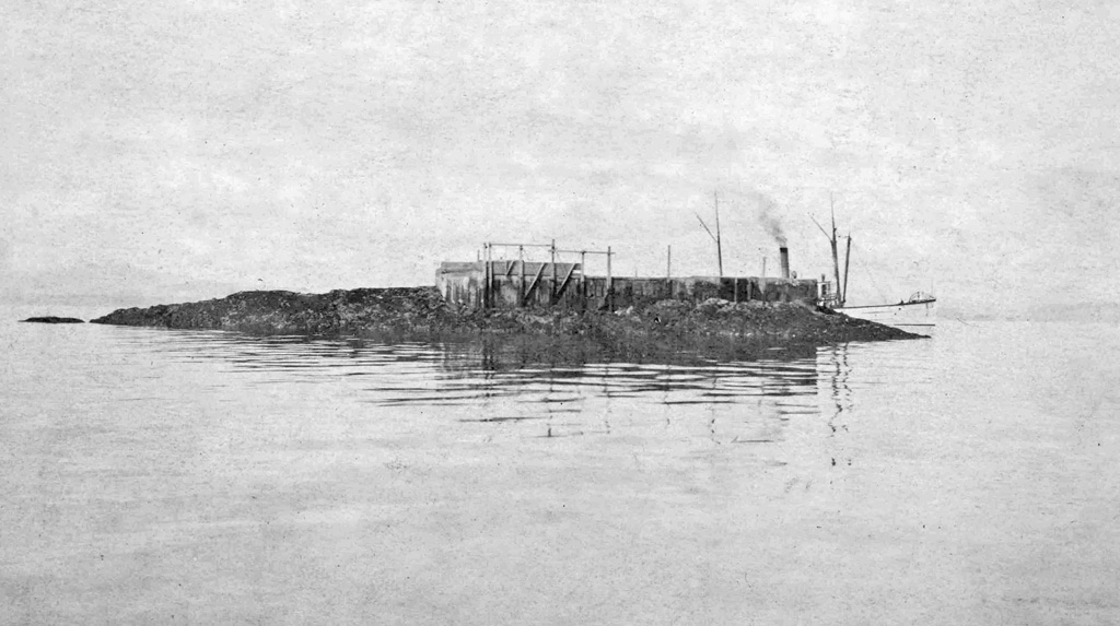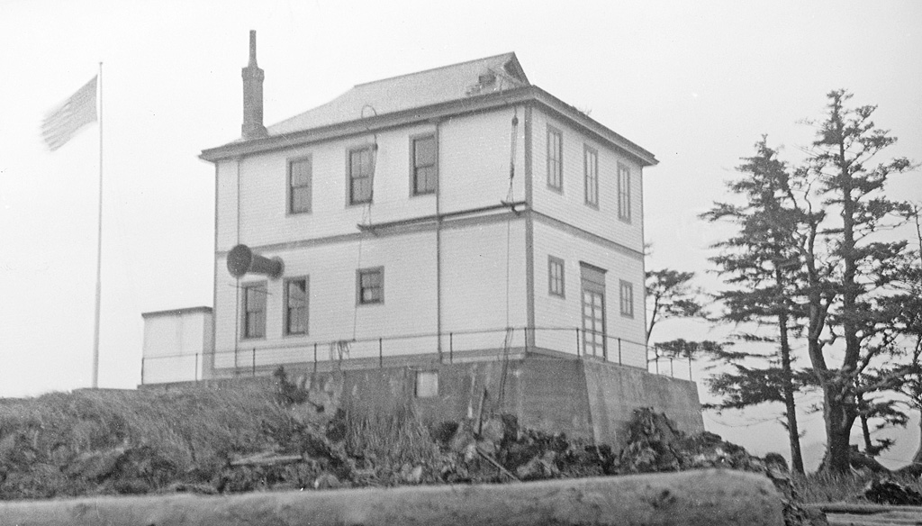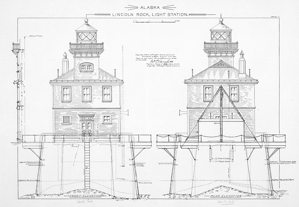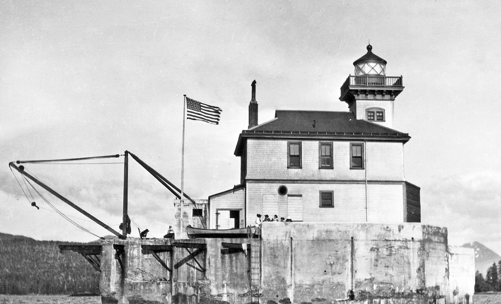 Almost from the start, the station was battered by the sea. In a storm on November 28, 1909, waves swept over the lighthouse, smashed in the south wooden side, washed away supplies, coal, and the station’s two boats. The keepers signaled for help, but a passing vessel (the Jefferson) did not notice them. Eventually the Army ship Paterson rescued them and took them to Wrangell to report the damage. On April 4, 1910, another storm rolled seas into the lower floor, leaving the crew trapped on the second floor.
