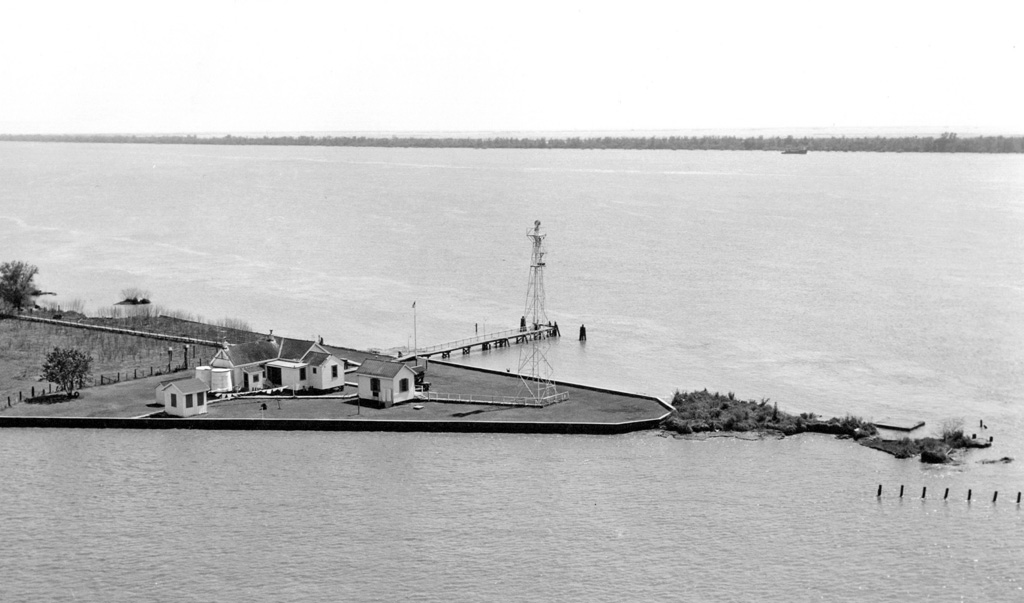 On March 1, 1891, Cubits Gap Fog-Signal Station was operational. The structure was a square wooden tower resting on four creosoted piles, twenty-six feet high, painted white with a brown roof, and positioned at the lower point of the gap. A Notice to Mariners that spring formally announced the establishment of the new fog bell. The tower stood in relative isolation: the nearest house lay some 600 feet away, and the nearest pilot station a half-mile farther upstream.