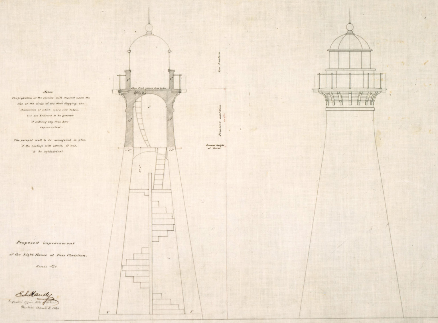 A keeper’s dwelling was erected adjacent to the tower. Roger A. Hiern, whose family name would later be memorialized in a main street in Pass Christian, was appointed the first keeper and also supervised construction. Hiern accepted the position of keeper on July 1, 1831, though the lighthouse did not immediately go into operation. The U.S. surveyor at Port Pontchartrain complained that the government had failed to supply oil for the lamps, delaying the exhibition of the light for nearly six months.