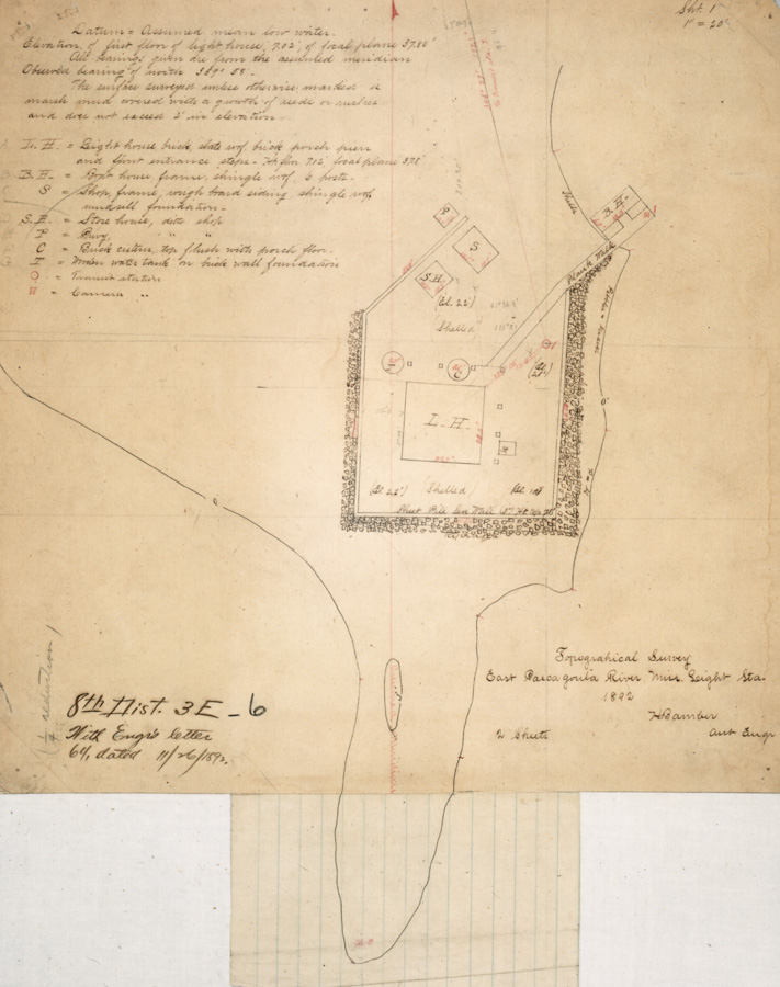 The money allocated for a lighthouse in 1850 was carried into the surplus fund, but Congress authorized a new appropriation of $5,000 on August 31, 1852, specifically for the erection of a lighthouse at or near the entrance of East Pascagoula River. In 1853, the Lighthouse Board announced that the station would receive early attention once a Coast Survey report determined the most suitable site.
