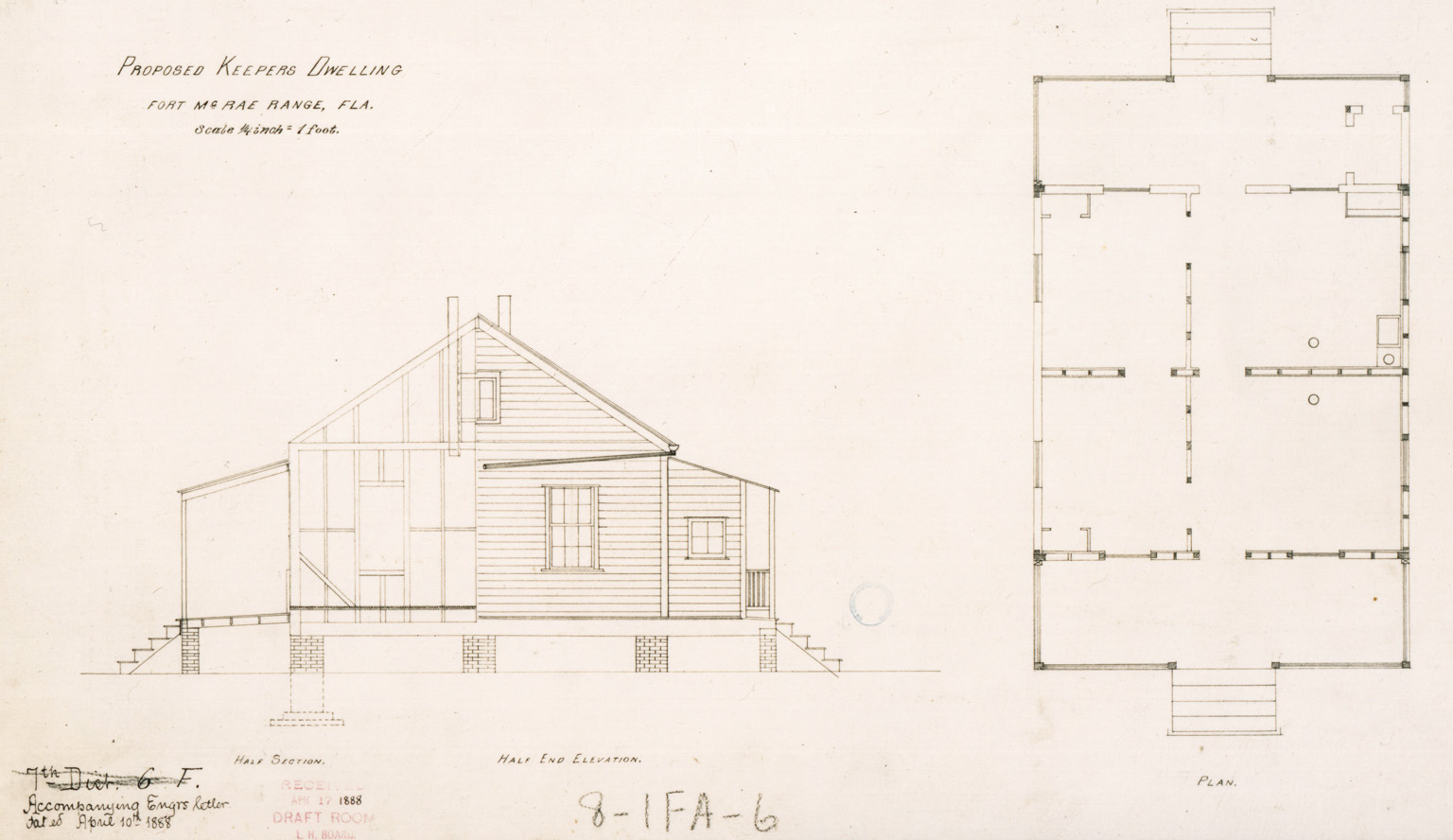 Together, these beacons provided a precise visual alignment that guided vessels across the bar and into the harbor. A keeper’s dwelling was planned, and by 1889 a one-story frame dwelling on brick piers had been erected near the front range, complete with kitchen, piazzas, cistern, and outbuildings.