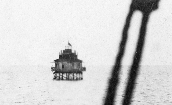1904 – Northwest Point Royal Shoal, Pamlico Sound, North Carolina.—After the lighting of the new station at Bluff Shoal this light was discontinued, and the lens, pedestal, lamps, and chimneys were removed for use at Hatteras Inlet light-station. The structure remains to serve as a daymark.
