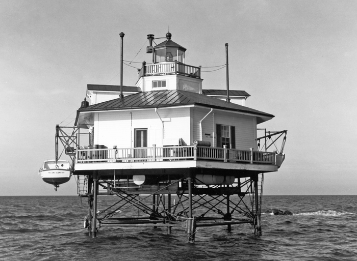 1889 – Holland’s Island Bar, Kedge’s Straits, Chesapeake Bay, Maryland.— The work so far accomplished toward the construction of this light house has kept pace with the progress made upon the Great Wicomico River structure, which is of the same proportions and design. The large working scow formerly used for such purposes becoming superannuated and unserviceable, a new one, 100 feet long and 28 feet in width, was built at the Lazaretto depot for use in connection with the construction of this light house. It is a staunch well-built vessel, with circular bow to facilitate towage, and has been successfully launched.