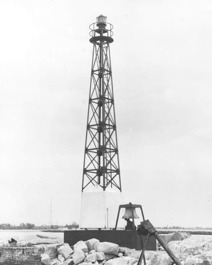 In a last effort at preservation, the Fairfield Dock Company purchased the lighthouse for one dollar and proposed moving it ashore as a historic landmark. When city officials declined to provide a site, the company reluctantly began dismantling the structure. On December 19, 1953, as workers burned scrap wood nearby, a shift in the wind carried sparks to the old timbers. Flames quickly engulfed the building, workmen fled from the scene aboard a tugboat, and within an hour, the old lighthouse was destroyed. The following spring, construction began on the new electric beacon, its utilitarian steel form in stark contrast to the vanished mansard-roofed dwelling.