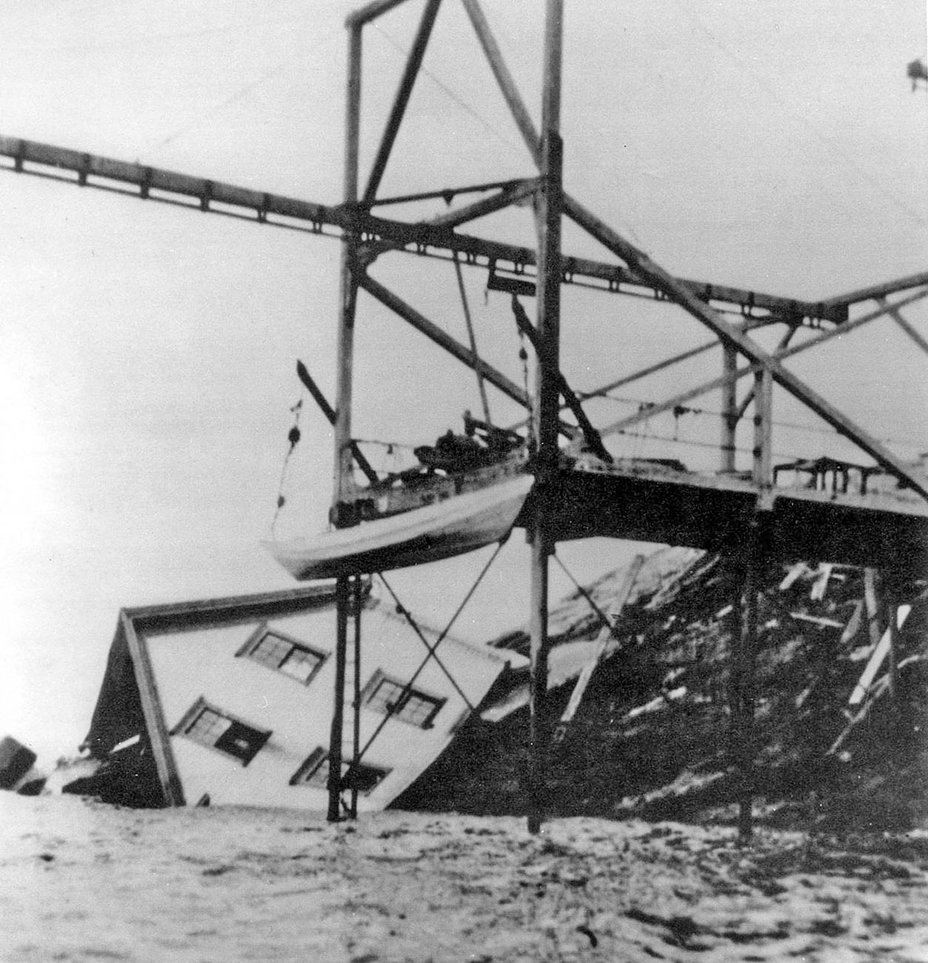 During the attempted move in October 1922, disaster struck. As workers attempted to haul the two-story building across the rock toward a waiting barge, a cable snapped. The house slid down the slope and partly into the ocean. Within days, the wrecked dwelling fell apart in the surf, and fragments of lumber later washed up along nearby beaches.