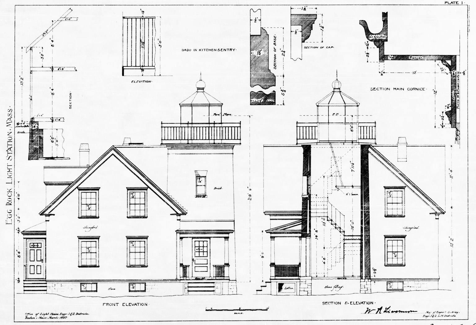 In 1889, the lantern was raised and a wooden parapet and railing were built beneath it. That same year George L. Lyon became keeper. Lyon would remain for more than two decades and become the station’s most famous resident.