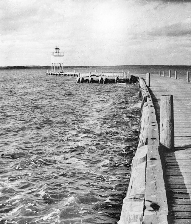 A harbour was built at Joggins Mines to support the coal industry, and in 1911, A.L. Mury of West Arichat was paid $678 to erect a thirty-two-foot-high square, wooden tower near the end of the breakwater that formed the harbour. The wooden tower was supported by four steel columns and was surmounted by a square, wooden lantern. Goold, Shapley & Muir of Brantfrod provided the steel substructure at a cost of $337.15. Fred Williams was hired as the first keeper of the lighthouse at Joggins at an annual salary of $180.