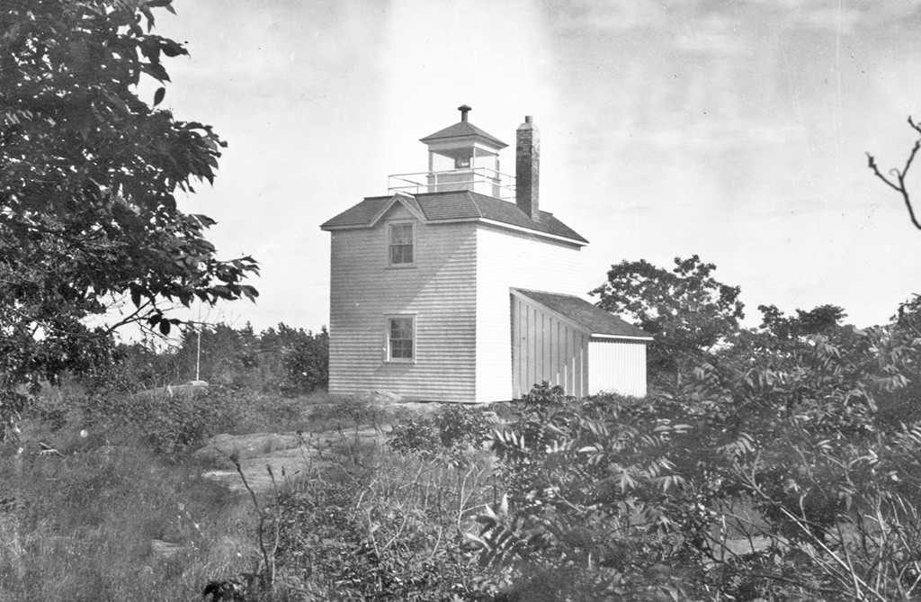 The first keeper of the lighthouse appears to be Joseph Mervin, who served until his death in the fall of 1877. A keeper’s dwelling was not built on the island when the lighthouse was constructed, and the need for one was noted in 1859. Darius Smith, superintendent of lights above Montreal, visited Burnt Island on July 7, 1877 and provided supplies for its operation. He noted that the tower needed painting, the dwelling needed ceiling with wood and painting, and the cistern needed to be repaired and plastered. Smith recorded that Keeper Mervin was seventy-nine at the time and had a family of seven. Though Keeper Mervin was elderly and would pass away a few months later, Smith found that the light was well kept and in good order.