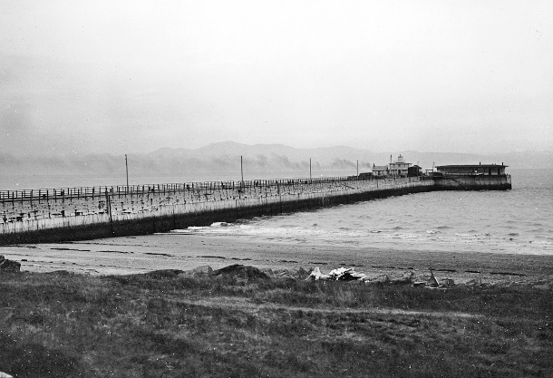 The tower is placed on the end of the wharf, and is a square wooden building 20 feet high, painted white.