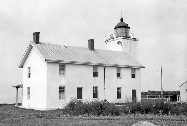 The light source was changed in 1907 to an incandescent oil vapor lamp, which greatly increased the light’s power. A forty-foot steel skeleton tower showing a flashing green light was erected near the lighthouse in 1933, and the lighthouse went dark. A local paper reported on the change: “In place of the old, friendly, white light, a new brilliant green light of 100,000 candle power cast its brighter rays over the Sound. The new beacon, which the Federal Government has placed at Horton Point, is the latest automatic type and requires no Lighthouse Keeper.”