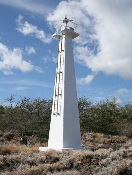 In his annual report for 1902, the superintendent of Public Works for the new Territory of Hawai'i mentioned that a new light had been built at Kawaihae, "the old light being low and shaded. The light was exhibited from one side of a wooden shack, that rested atop a pyramidal wooden trestle tower. No dwelling was provided for a keeper, and a footpath led to the village, distant about one-quarter of a mile."